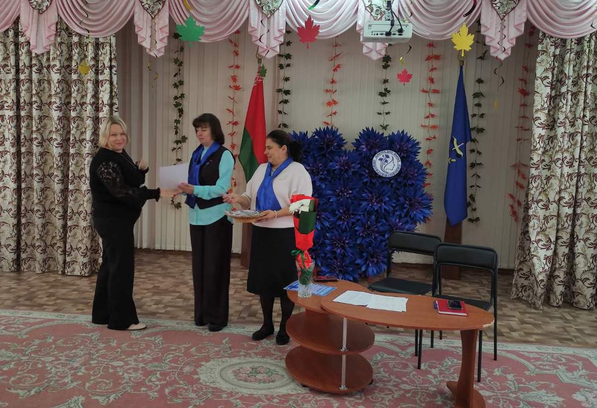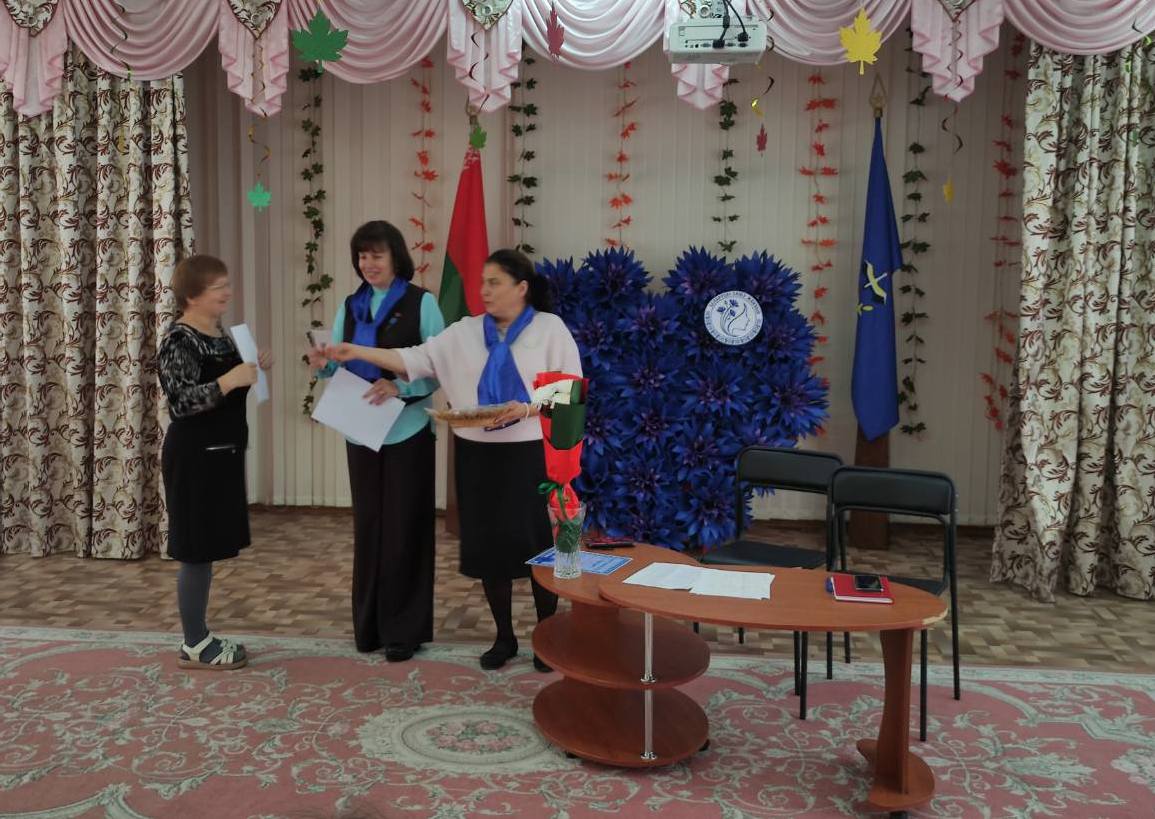 Юрчак И.В., заместитель заведуюшего, председатель первичной организации общественного объединения "Белорусский союз женщин" вручила благодарности активистам за участие в деятельности первички и подарок-символ объединения "Василек" в честь празднования Дня матери всем членам объединения.